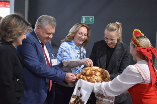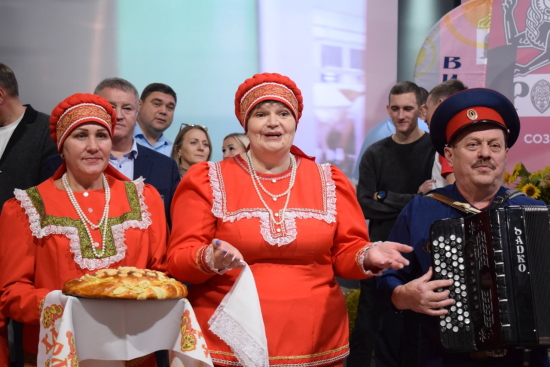 Работники сферы культуры подготовили насыщенную и самобытную программу. Встретили делегацию по исконно русским обычаям — с пышным караваем.
